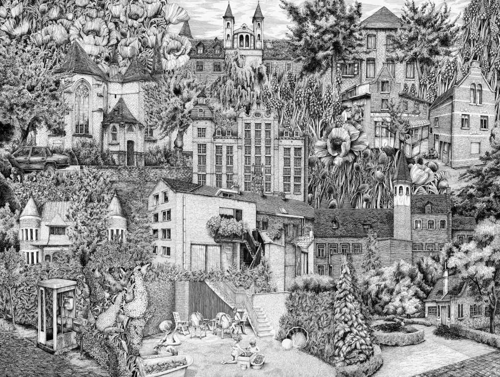 The artist was honored to be invited to participate in Beaulieu 2025. For this project, she returned to her childhood in Machelen, drawing inspiration from her personal memories. She searched for old photographs that echoed her recollections and captured new images of places that once fascinated her as a child. Blending past and present, she created a series of artworks that form her own surreal world—one filled with nostalgia, emotion, and imagination.